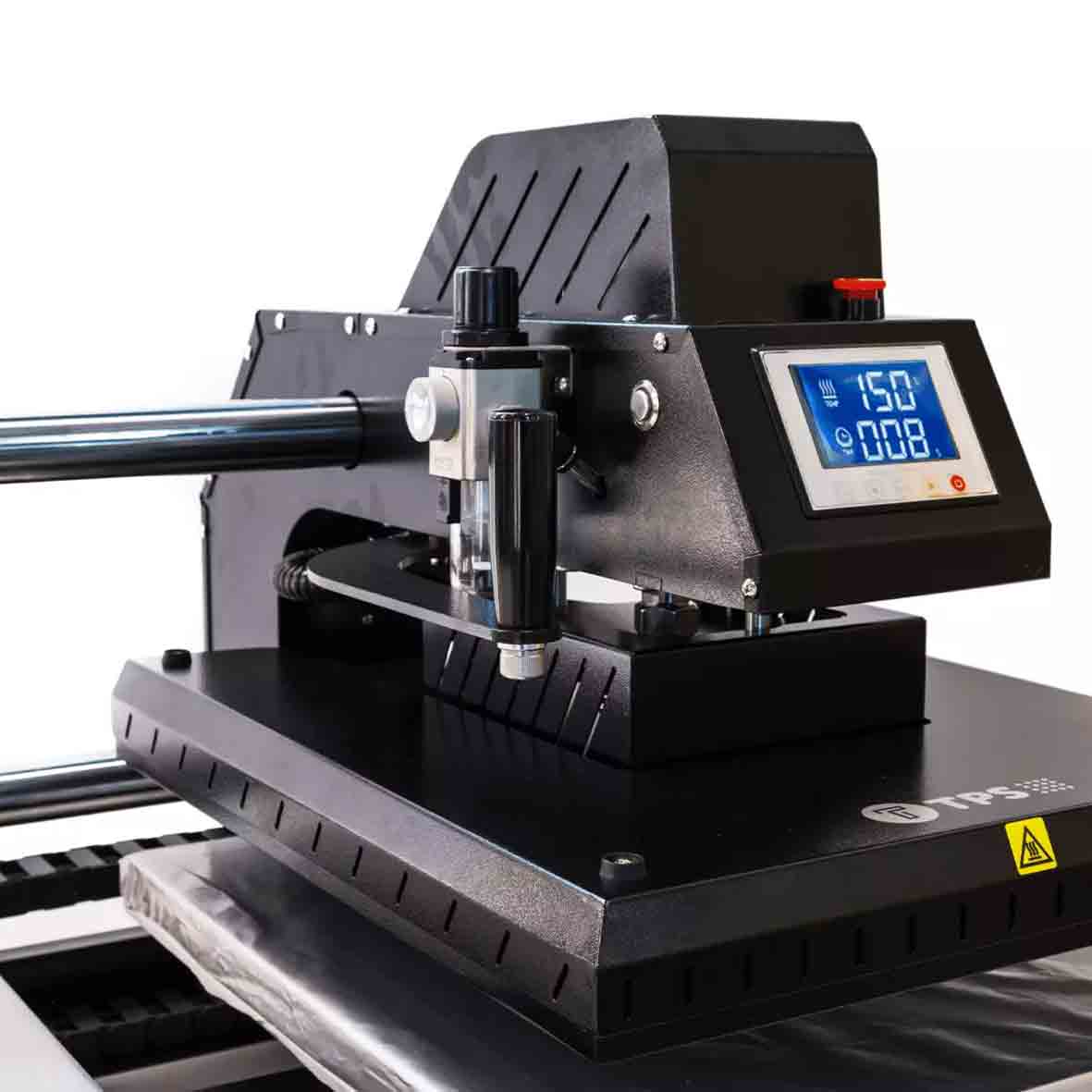 De TPS Dual Air Press is met zijn dubbele platen en krachtige functies perfect voor textieldrukkers, sportwinkels en reclamebedrijven die dagelijks grote hoeveelheden (100+ items) moeten produceren. Dankzij de ruimte onder de platen kun je textiel eenvoudig door de pers schuiven, wat de snelheid en efficiëntie aanzienlijk verhoogt.